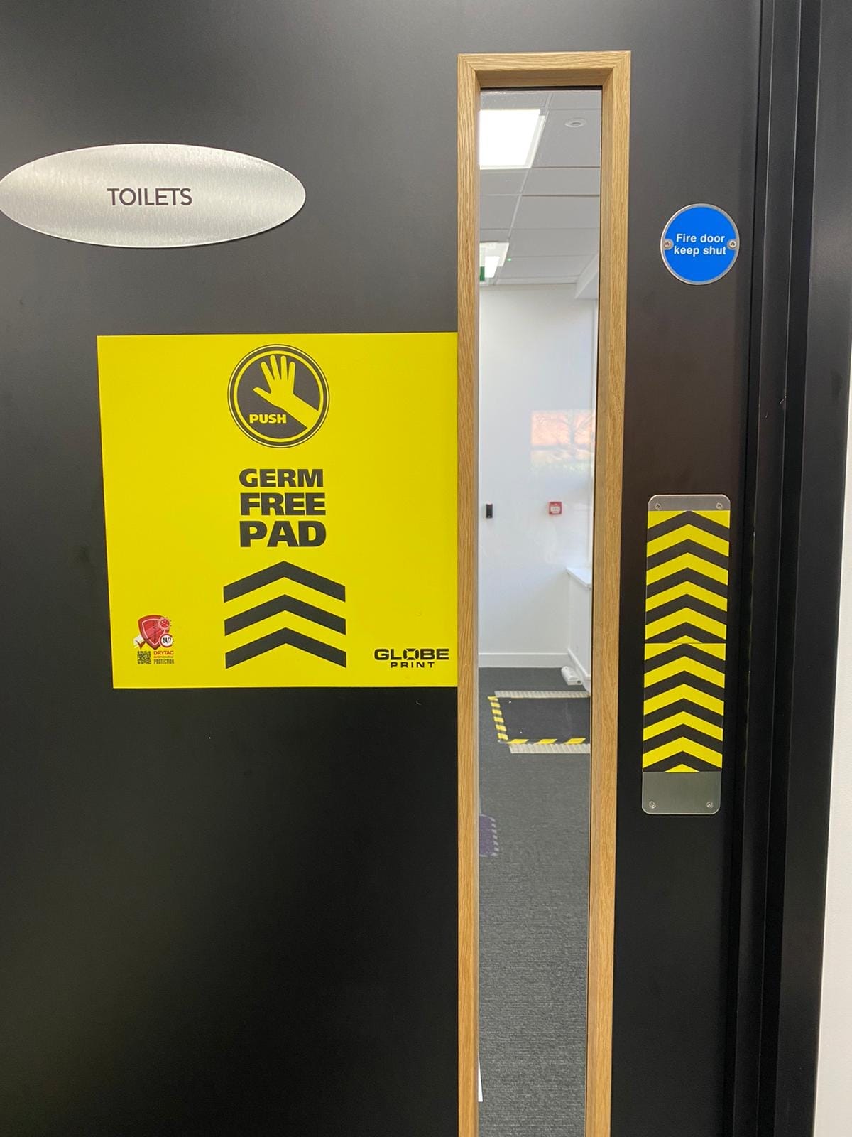 Finally, Globe Print used Drytac Protac AMP Film for graphics at ‘touch-points’ throughout the facility, including doors and handles. Protac AMP is a 150µ textured polyester film that incorporates Microban® Antimicrobial Protection, which provides protection against the spread of microbial contamination.