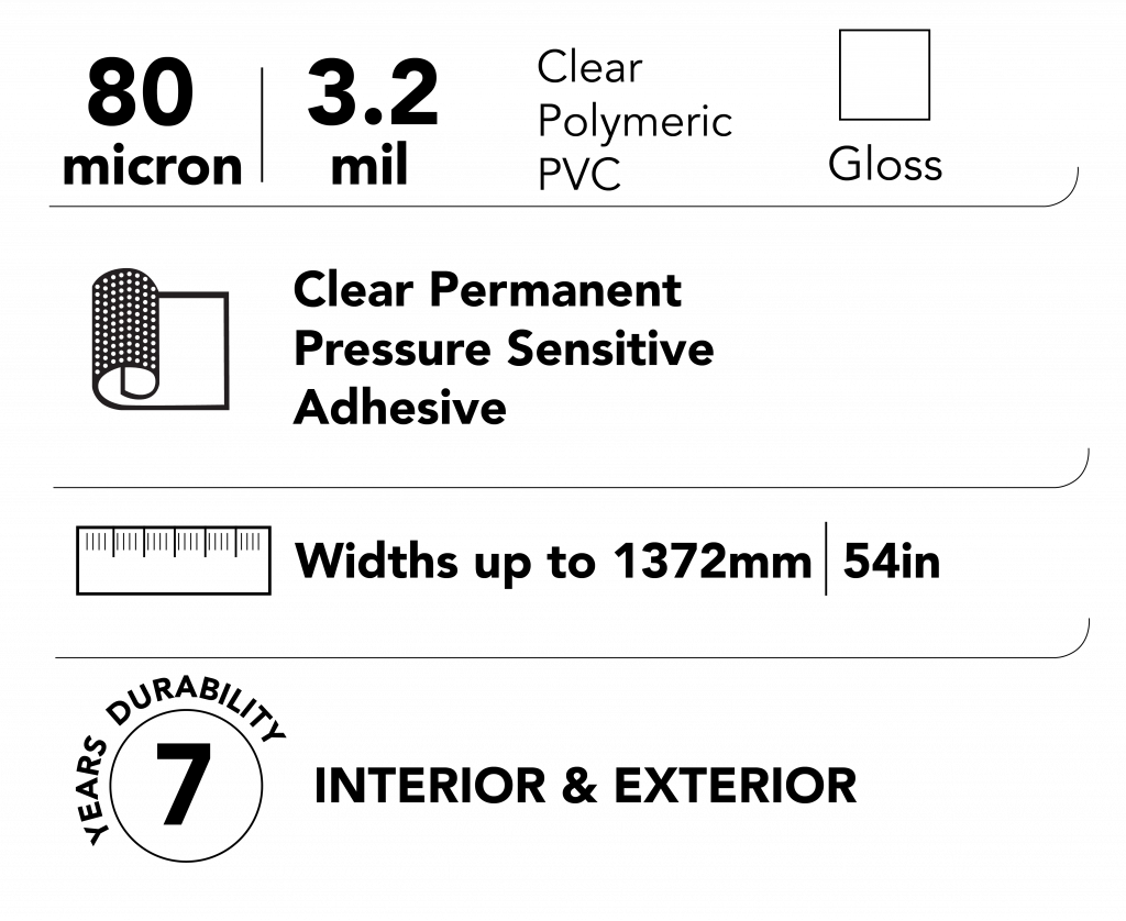 Weathershield Gloss high performance, polymeric PVC overlaminating film has a cross linking adhesive fortified with UV stabilisers and absorbers. It uses more complex plasticisers than less expensive monomeric PVC films, resulting in significantly improved durability and weatherability. Weathershield Gloss also has minimal shrinkage and odour due to plasticiser migration resistance. It is are recommended for outdoor signage or high-end indoor graphic applications where the best protection is needed.