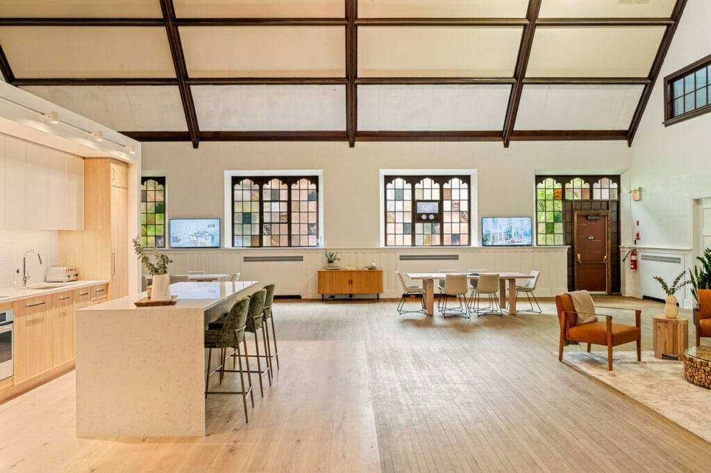 Brandsmith, a client of Sleek Signs, then contacted the large-format print specialist to partner on the project. The focus was to create signage that was purposeful yet reversible, respecting the building and its story. Within the brief were full-size wall murals and interior signage to anchor the space, as well as custom window graphics in the stained-glass spirit of the heritage site, allowing natural light to pass through.
