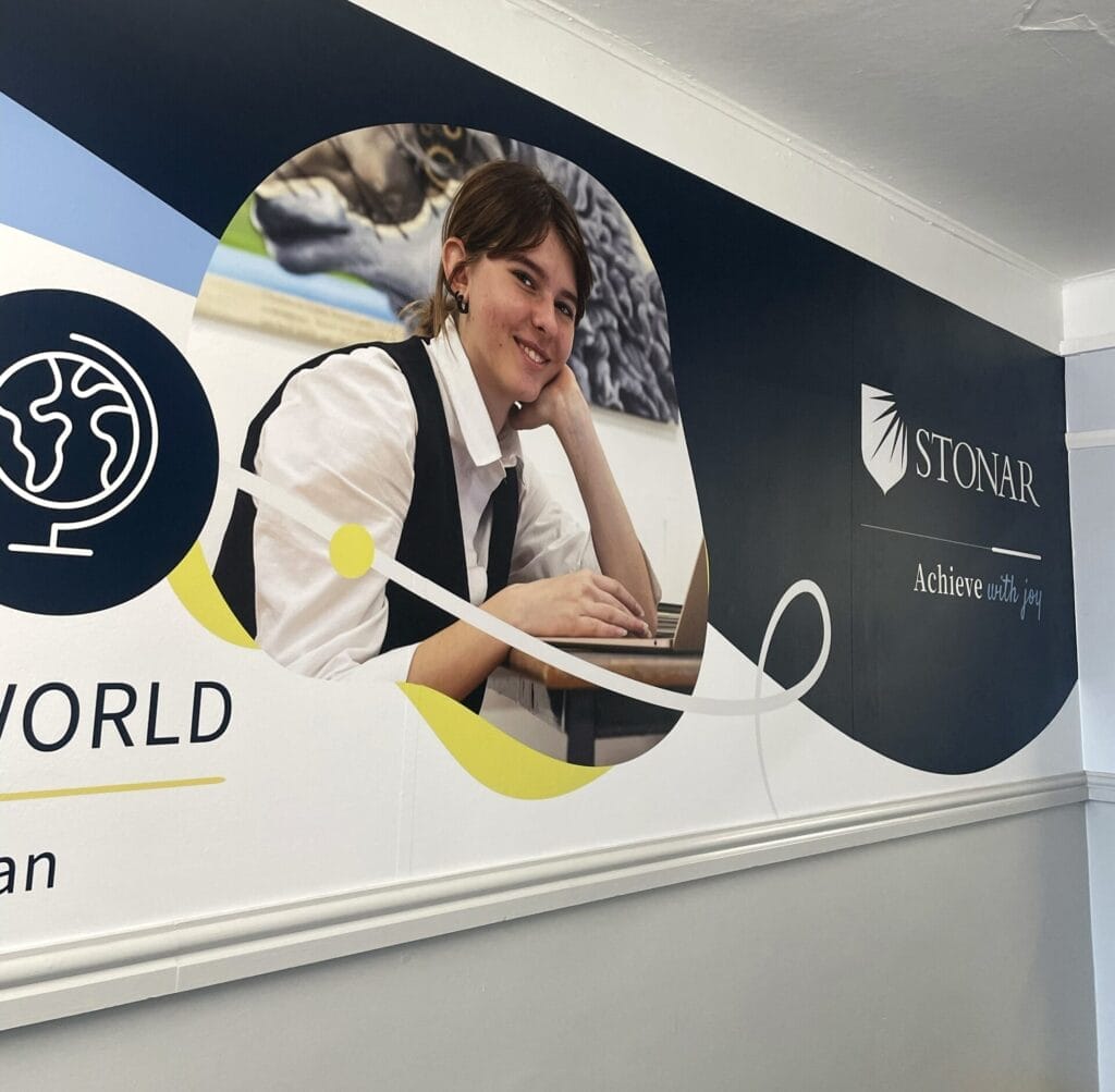 Founded in 1895, Stonar School in Atworth, Wiltshire is an independent day and boarding school, with sculptor Laura Ford and fashion designer Georgia Hardinge among its former pupils. The school was seeking a partner to produce interior graphics to not only inspire students but to also serve as a statement piece to illustrate its approach to education.